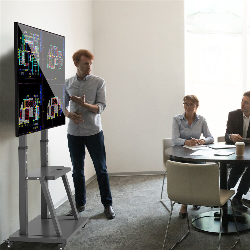 - Adjustable & Convenient: Easily adjust the height of the TV cart between 130cm and 160cm to suit various viewing preferences. The dual shelf design provides ample space for storing computers, DVD players, and other AV equipment, keeping everything you need at your fingertips.