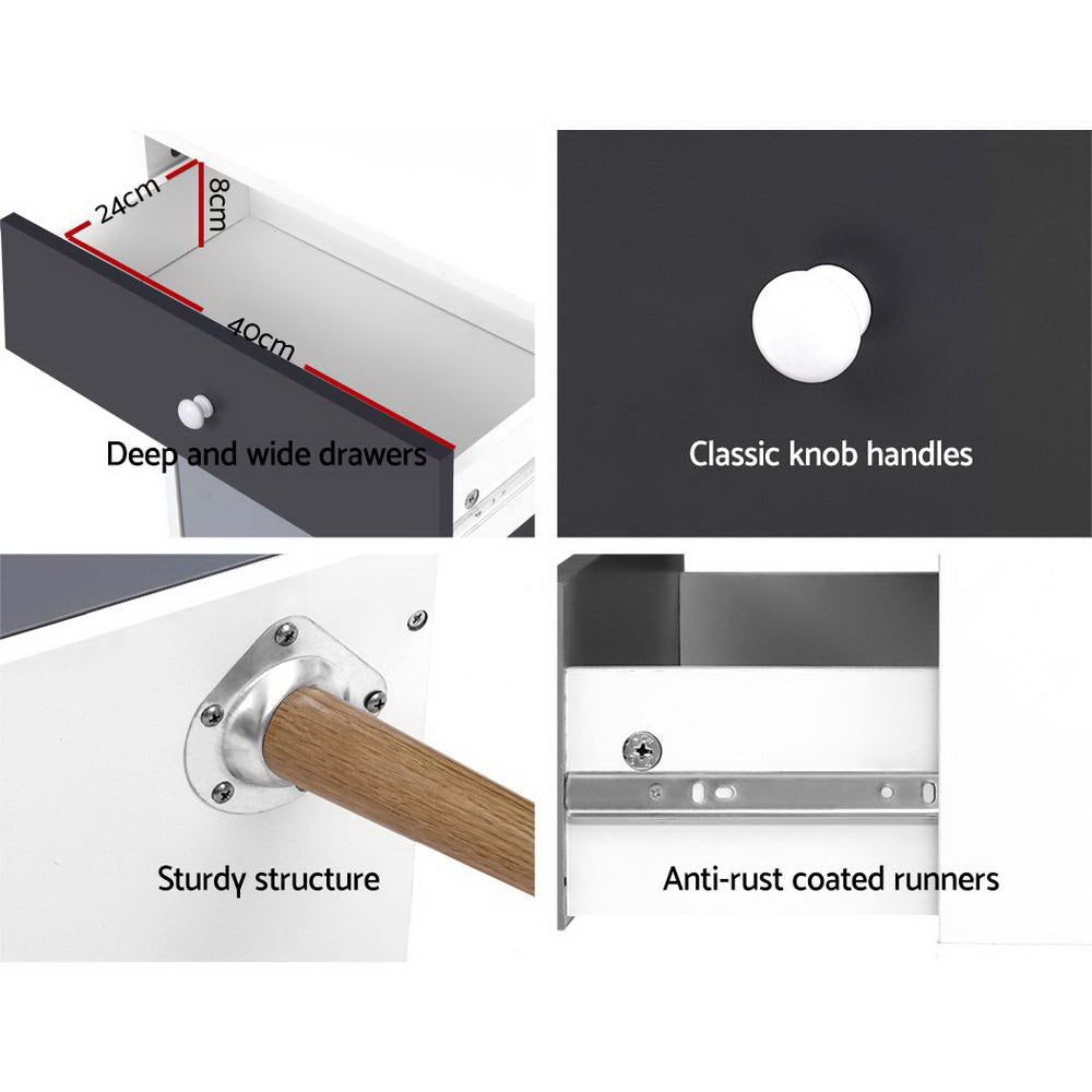 A design that is Scandinavian-inspired and while still reminiscent of decades-old influences, our Artiss 5-drawer Tallboy offers full functionality with subtle style. Made from quality particle board and a smooth paper veneer finish, the two-tone tallboy adds chic appeal to your décor and is the perfect choice to grace a dressing room, bedroom, living room or any other space in your home or establishment. The five generous-sized drawers provide ample space for all your clothing, fashion accessories, personal essentials and more. The splayed legs offer a unique, reliable stance, while the classic knob handles and smooth anti-rust metal drawer slides offer smooth, hassle-free use every time. Not sure this piece will suit your home? Take advantage of the latest 3D augmented reality technology to see it first hand – just scan the QR code on our website and decide for yourself!