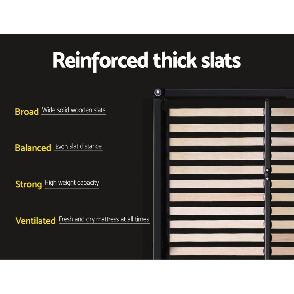 It is time to get the sleep you deserve with this Artiss Nino Bed Frame. Beautifully draped in faux-linen fabric, this is the luxurious bed frame you all deserve to rest in every night. The smooth headboard brings the prestige, whilst the strong steel frame with reinforced steel bars and a wooden arched slat base can put your mind at ease as you know you are sleeping on quality. One of the best qualities is the fact the bed frame has a gas lift which creates an instant storage area with ample space for you to hide away your items. This bed frame has the smarts as well as being great to look at!