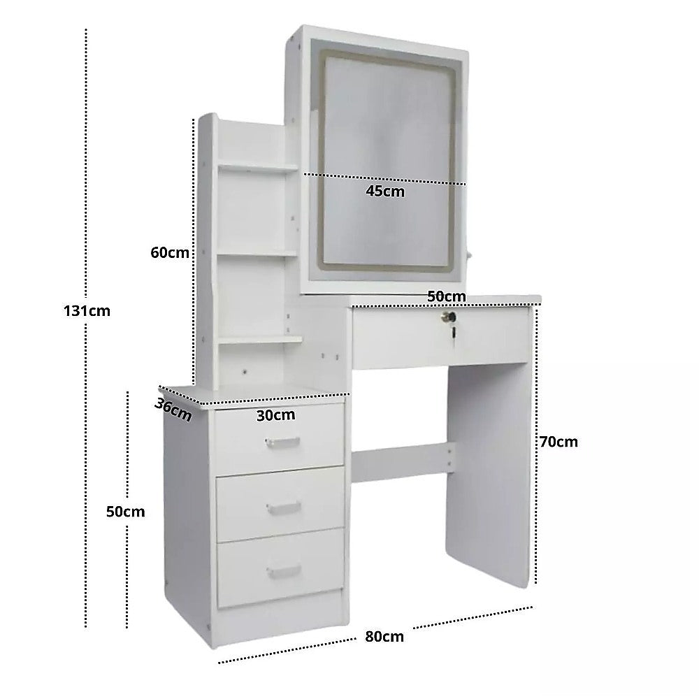 Enhance your bedroom or cozy corner with this elegant vanity set. Featuring a stylish design, built-in LED mirror, and convenient storage drawer, it seamlessly combines beauty and functionalitykeeping your essentials organised and within easy reach.