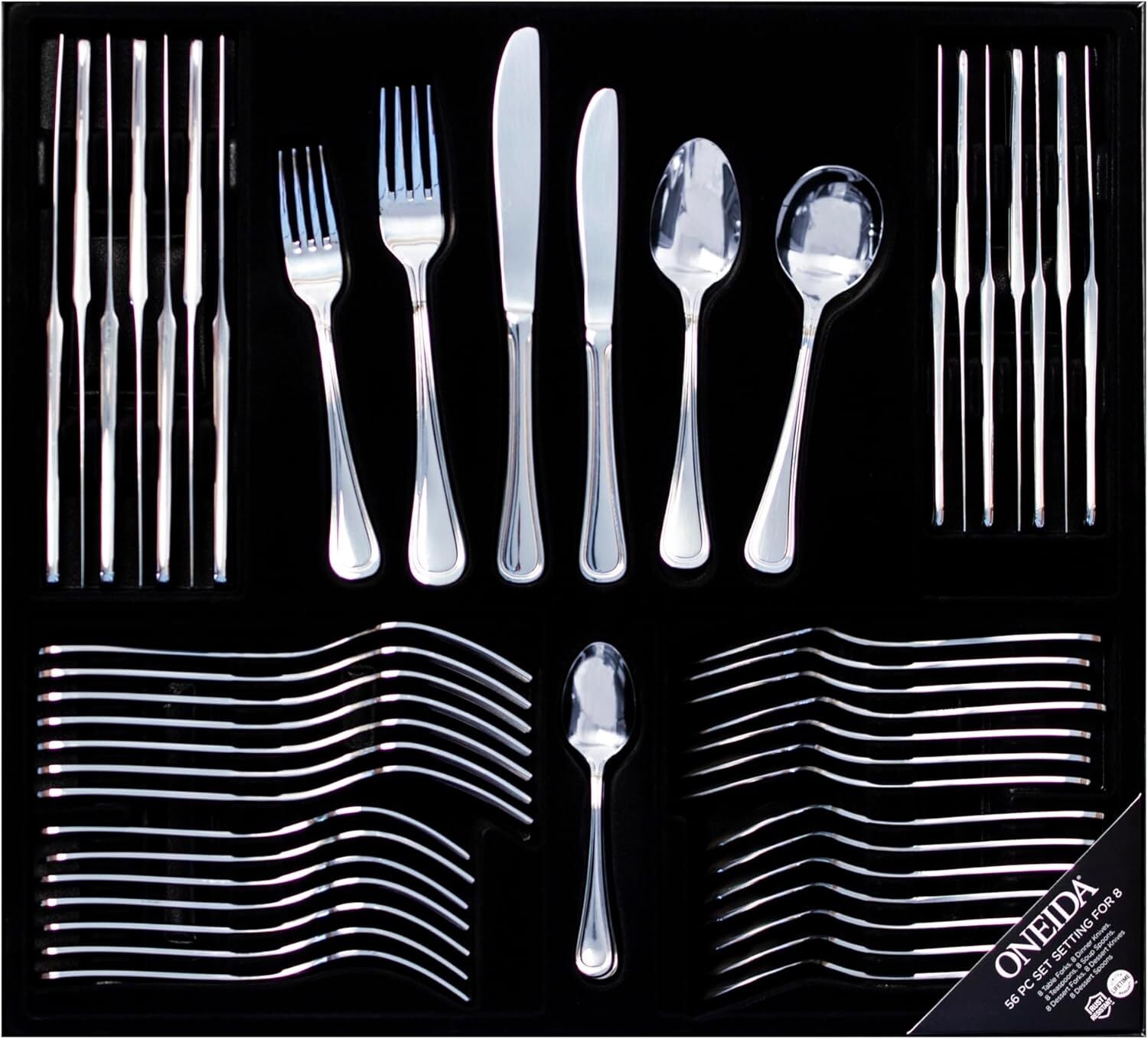 Oneida Barcelona 56pc Cutlery Butter Knives Forks Spoons Teaspoons Set in Gift Box