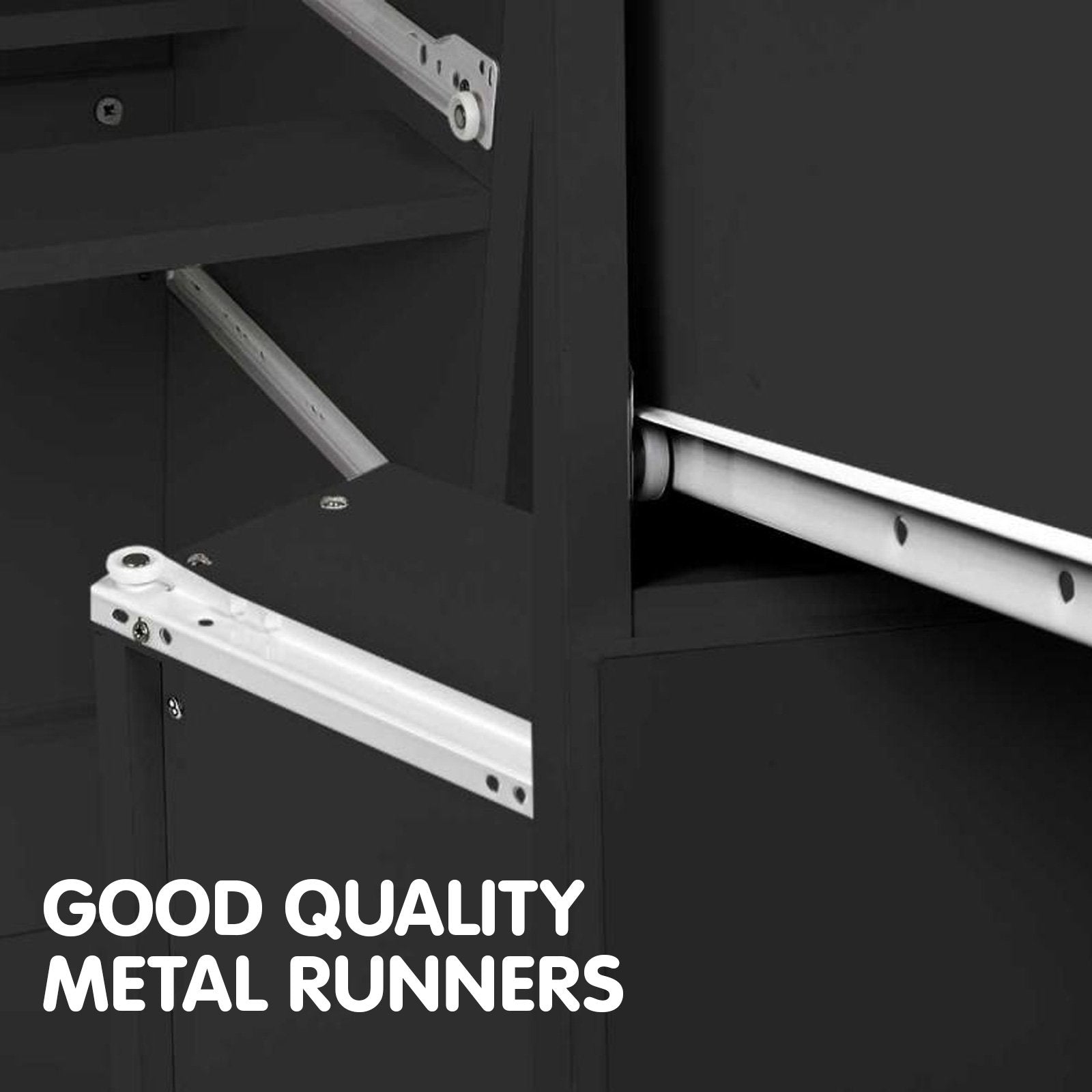 Made to last for long, high density particle boards and anti-rust coated metal drawer runners are used to built this piece. This chest also features a melamine coating, so cleaning off any marks is a quick and easy job.