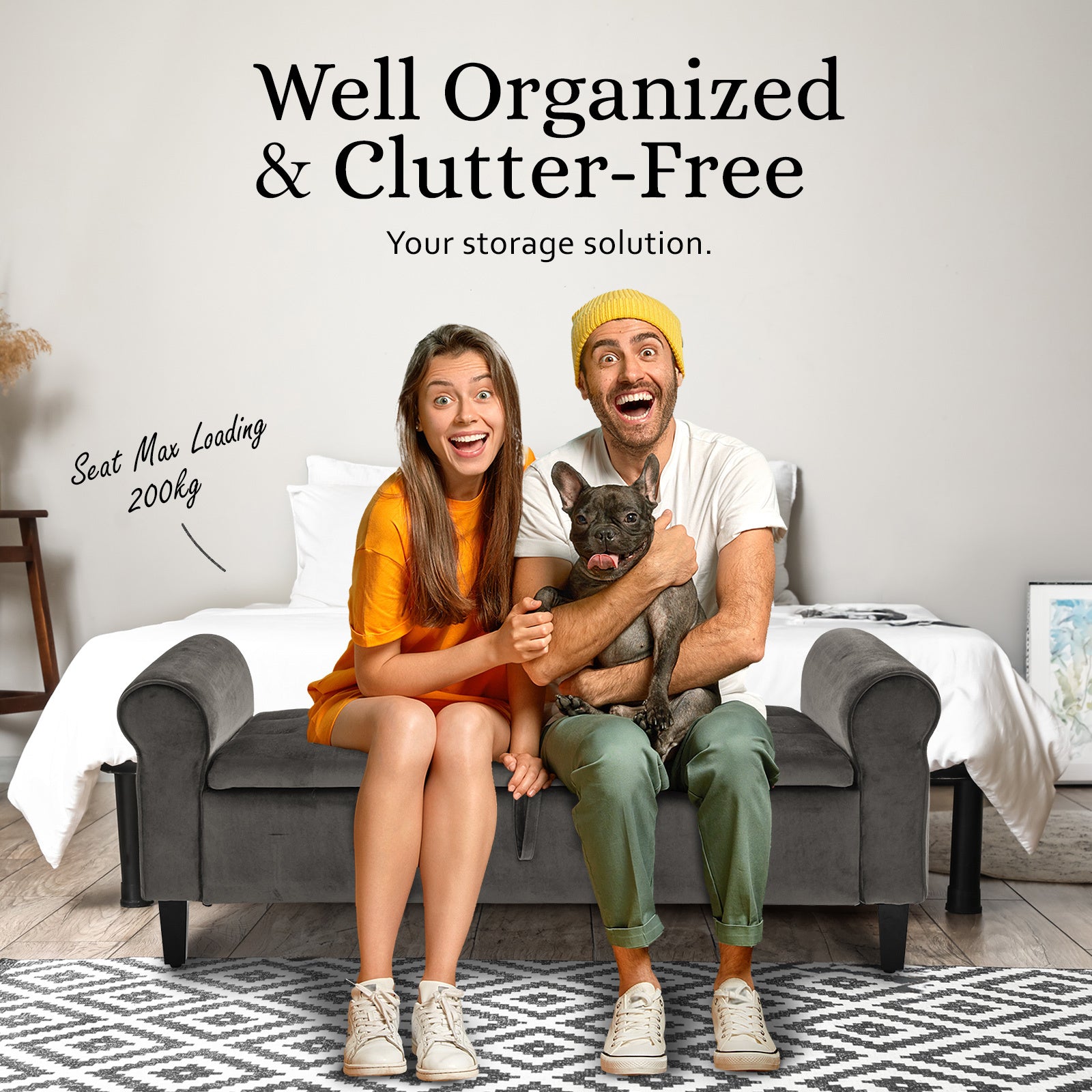 Storage Ottoman Stool Arm Bench Seat 132cm Velvet GREY