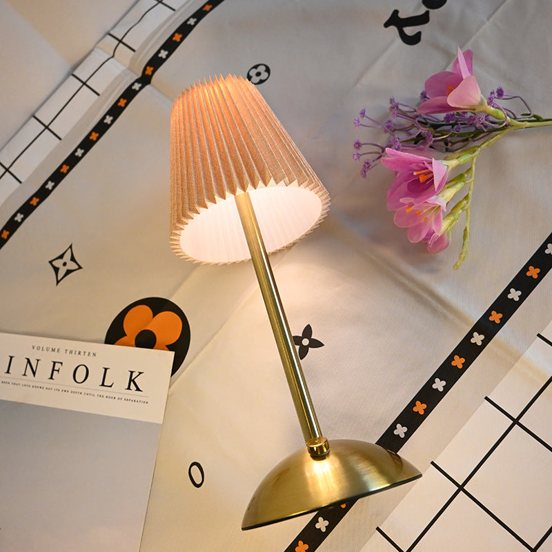 Add a touch of sophistication to your space with the Elegant Pleated Fabric Table Lamp. Featuring a beautifully pleated fabric shade and a sturdy iron base, this lamp combines timeless design with modern functionality. Equipped with a USB-rechargeable 1200mA battery, it offers 6-18 hours of runtime and features touch control for seamless switching between three light modes: white light, warm light, and natural light. Perfect for living rooms, bedrooms, study areas, or as a stylish desk lamp.